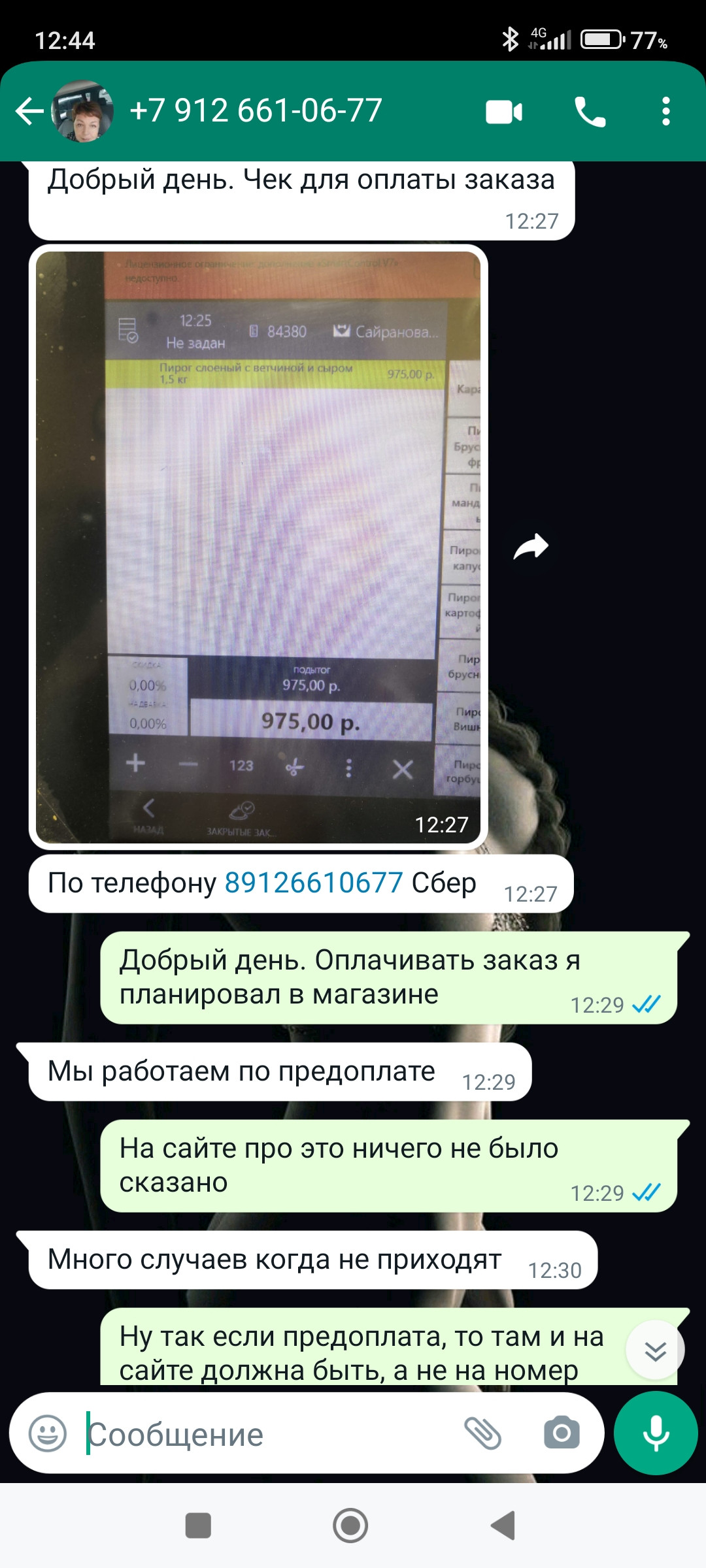Сделал заказ на сайте чтобы на следующий день забрать пирог. На сайте пекарни увидел информацию о том что при самовывозе из магазина оплата заказа происходит в момент его получения. Ок. Сделал заказ, затем приходит сообщение на ватсап что мол они работают только по предоплате и деньги нужно отправлять по номеру телефона (т.е на карту сбера). Это...