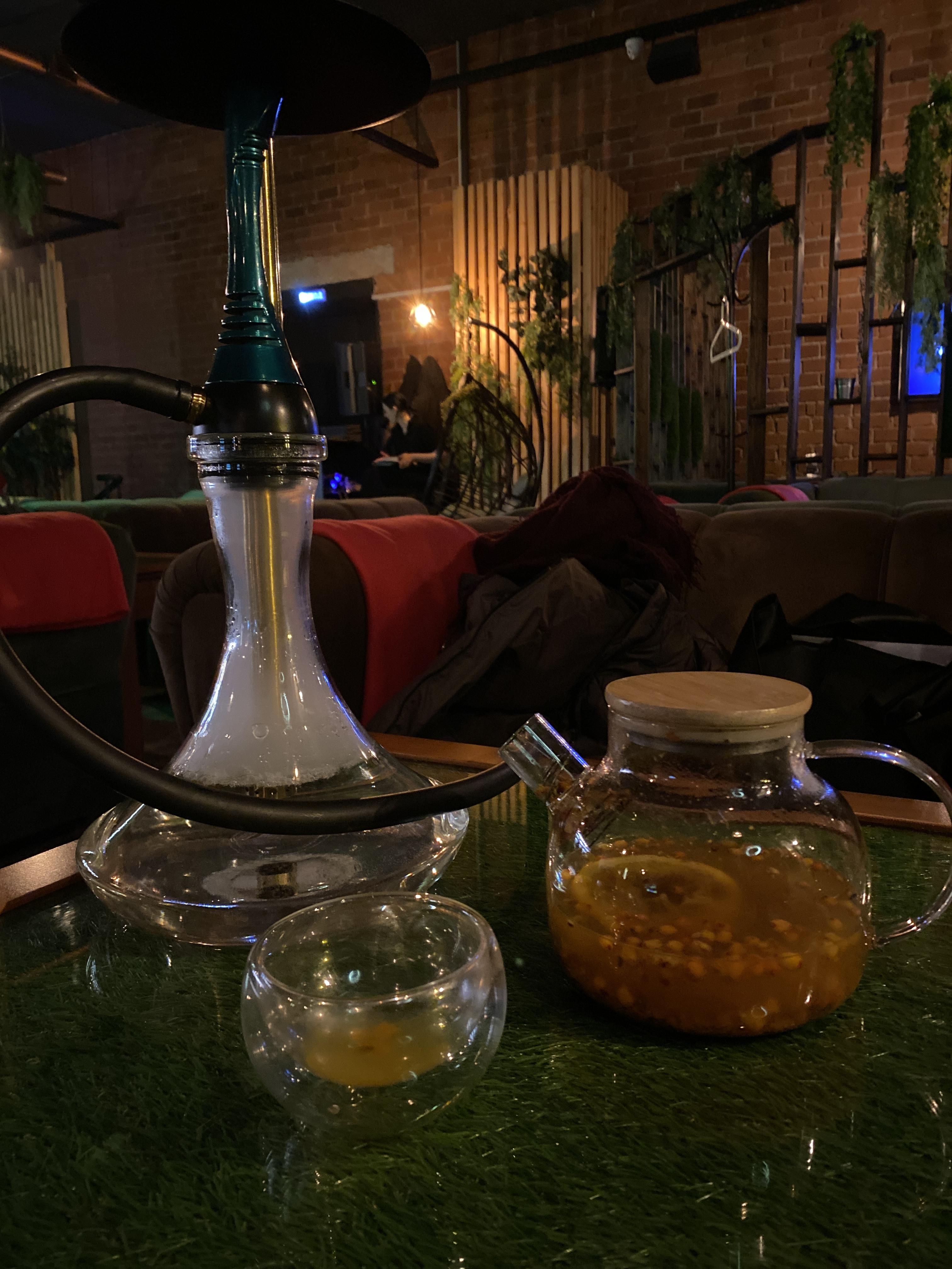 Очень приятная атмосфера, хороший кальян, вкусный облепиховый чай.